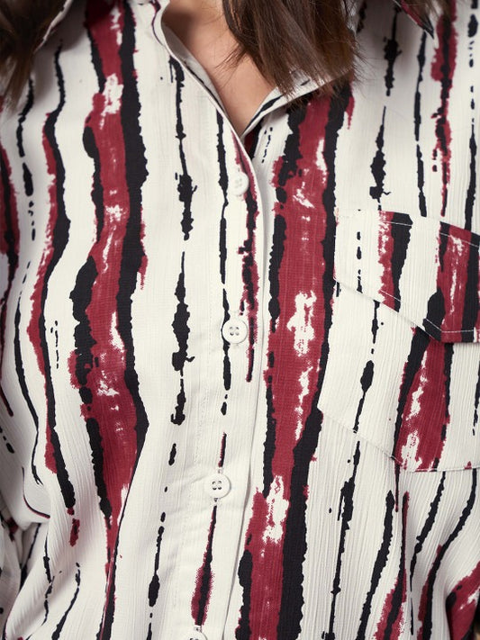 White & Maroon Abstract Stripe Shirt